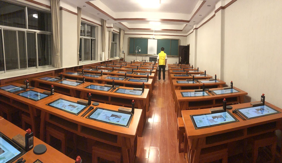 此書法教室建設(shè)方案采用國(guó)內(nèi)最先進(jìn)的臨摹方案和教學(xué)方案。標(biāo)準(zhǔn)款數(shù)字臨摹臺(tái)采用文興國(guó)內(nèi)首創(chuàng)光學(xué)聚焦臨摹系統(tǒng)完成,達(dá)到節(jié)能環(huán)保,壽命長(zhǎng),耐用。機(jī)身與桌面平整。臨摹機(jī)高清晰度,高對(duì)比度,臨摹屏表面堅(jiān)固耐用、耐磨抗壓。臨摹臺(tái)要求防水,防塵。臨摹臺(tái)上可直接用文興專利專用墨水在屏上方書寫。配上文興專用不干毛筆,桌面能保持干凈整潔,毛筆課上完后,不用再清洗毛筆。