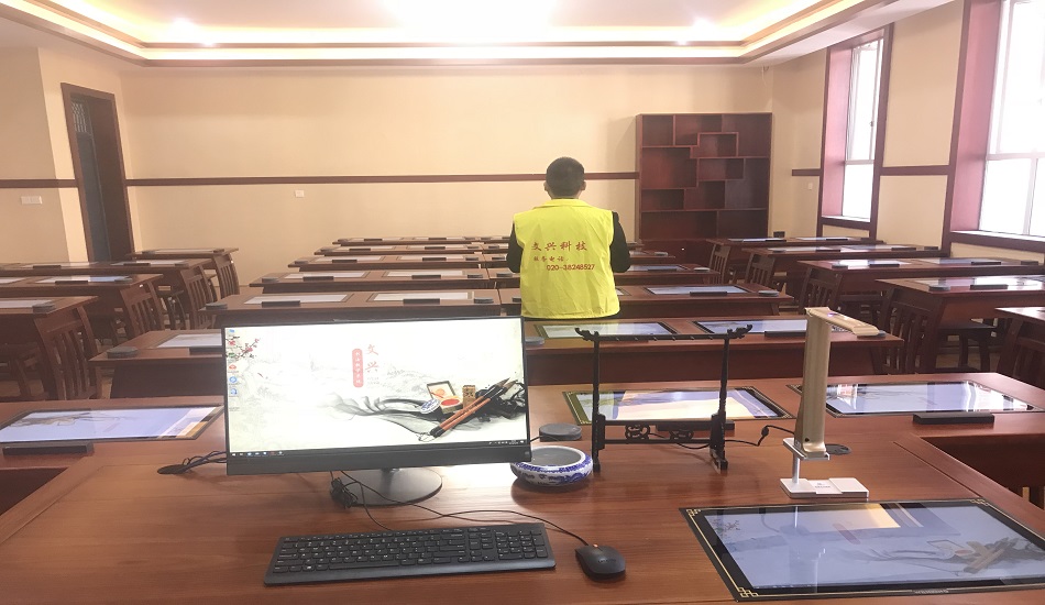 裝修風格要求,數(shù)字化書法教室四面墻體文化符號,文字及特色墻紙噴繪,教室面積XX平方米,教室黑板上方張掛“書于育人、法貴自然”或弘揚國學,勤學苦練“等之類的勵志語,教室兩側和后面墻壁應貼有勵志,勤奮類歷代書法名家作品或學生臨摹,創(chuàng)作的書法作品。激勵學生熱愛祖國,弘揚優(yōu)勢傳統(tǒng)文化,勵志作品要富有藝術性和思想性,有利于學生學習鑒賞,教室周邊墻壁設學生習作欄,及時展示學生學習成果。