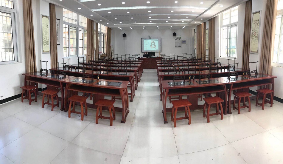 本系統(tǒng)采購48座為/間書法教室,書法桌采用實木清明古典風(fēng)格,兩人一桌,規(guī)格為:140*60*75(長*寬*高)。實木結(jié)實牢固,漆面平整光亮,一桌兩凳,規(guī)格為35*30*45(長*寬*高)整體風(fēng)格為明清古典。