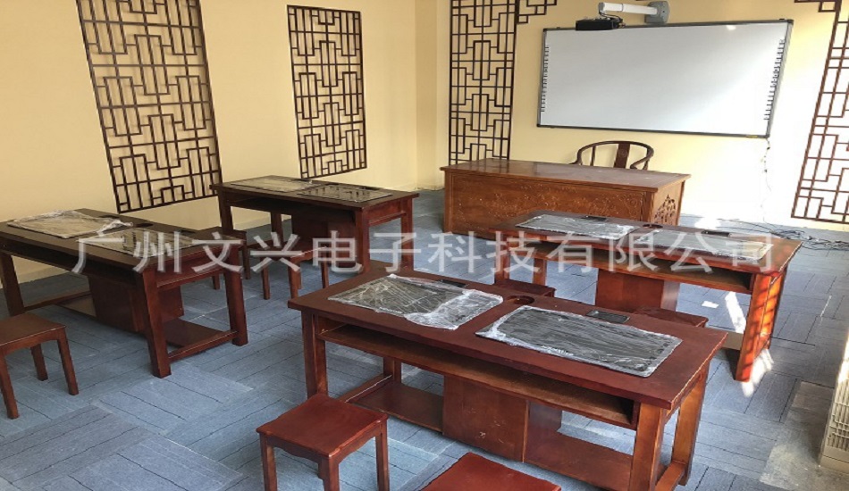 此書法教室建設(shè)方案采用國(guó)內(nèi)最先進(jìn)的臨摹方案和教學(xué)方案。標(biāo)準(zhǔn)款數(shù)字臨摹臺(tái)采用文興國(guó)內(nèi)首創(chuàng)光學(xué)聚焦臨摹系統(tǒng)完成,達(dá)到節(jié)能環(huán)保,壽命長(zhǎng),耐用。機(jī)身與桌面平整。臨摹機(jī)高清晰度,高對(duì)比度,臨摹屏表面堅(jiān)固耐用、耐磨抗壓。臨摹臺(tái)要求防水,防塵。臨摹臺(tái)上可直接用文興專利專用墨水在屏上方書寫。配上文興專用不干毛筆,桌面能保持干凈整潔,毛筆課上完后,不用再清洗毛筆。