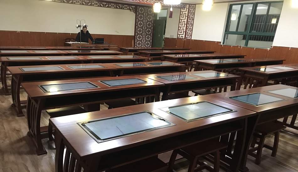 此書法教室建設(shè)方案采用國(guó)內(nèi)最先進(jìn)的臨摹方案和教學(xué)方案。標(biāo)準(zhǔn)款數(shù)字臨摹臺(tái)采用文興國(guó)內(nèi)首創(chuàng)光學(xué)聚焦臨摹系統(tǒng)完成,達(dá)到節(jié)能環(huán)保,壽命長(zhǎng),耐用。機(jī)身與桌面平整。臨摹機(jī)高清晰度,高對(duì)比度,臨摹屏表面堅(jiān)固耐用、耐磨抗壓。臨摹臺(tái)要求防水,防塵。臨摹臺(tái)上可直接用文興專利專用墨水在屏上方書寫。配上文興專用不干毛筆,桌面能保持干凈整潔,毛筆課上完后,不用再清洗毛筆。