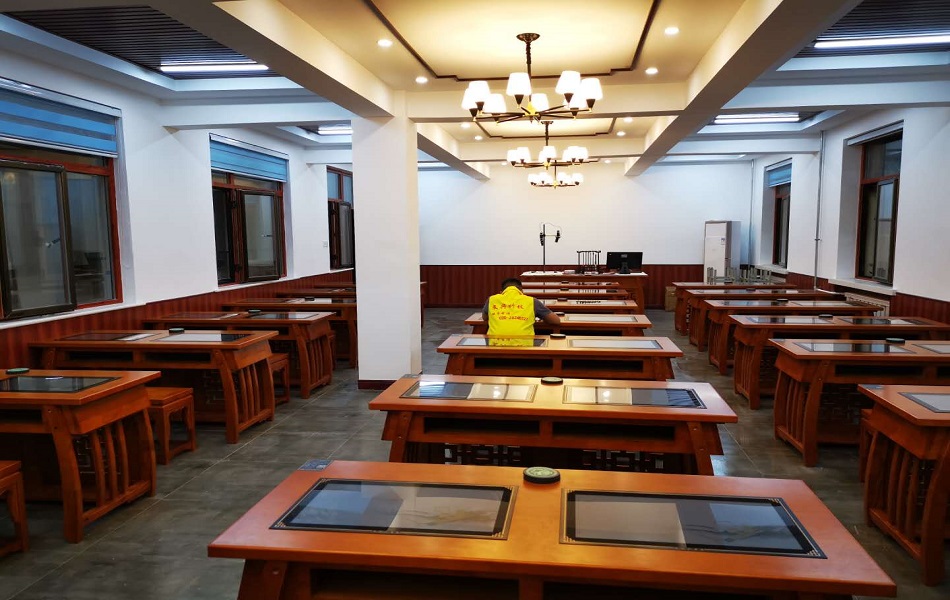 本系統(tǒng)采購48座為/間書法教室,書法桌采用實木清明古典風(fēng)格,兩人一桌,規(guī)格為:140*60*75(長*寬*高)。實木結(jié)實牢固,漆面平整光亮,一桌兩凳,規(guī)格為35*30*45(長*寬*高)整體風(fēng)格為明清古典。
