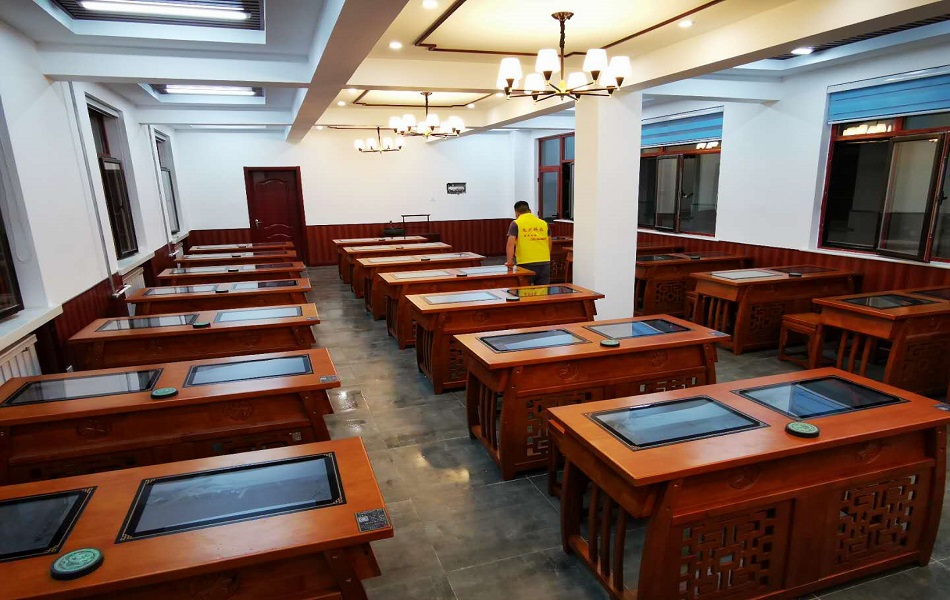 本系統(tǒng)采購48座為/間書法教室,書法桌采用實木清明古典風格,兩人一桌,規(guī)格為:140*60*75(長*寬*高)。實木結(jié)實牢固,漆面平整光亮,一桌兩凳,規(guī)格為35*30*45(長*寬*高)整體風格為明清古典。