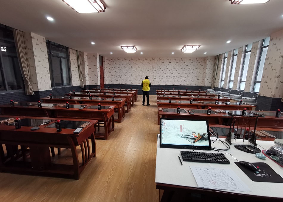 本系統(tǒng)采購48座為/間書法教室,書法桌采用實(shí)木清明古典風(fēng)格,兩人一桌,規(guī)格為:140*60*75(長*寬*高)。實(shí)木結(jié)實(shí)牢固,漆面平整光亮,一桌兩凳,規(guī)格為35*30*45(長*寬*高)整體風(fēng)格為明清古典。