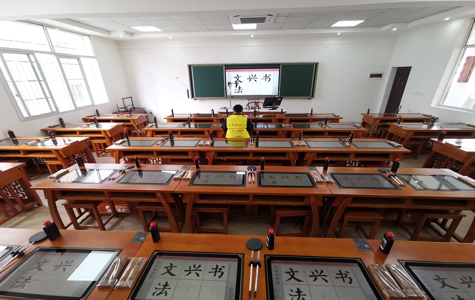 本系統(tǒng)采購48座為/間書法教室,書法桌采用實木清明古典風格,兩人一桌,規(guī)格為:140*60*75(長*寬*高)。實木結(jié)實牢固,漆面平整光亮,一桌兩凳,規(guī)格為35*30*45(長*寬*高)整體風格為明清古典。