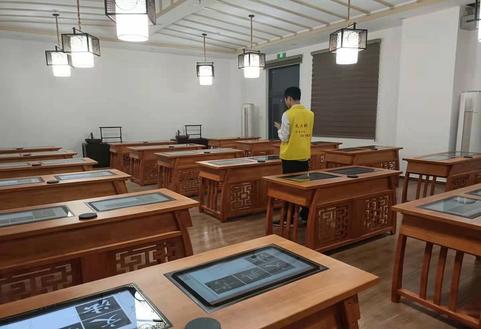 本套方案采用48座為/間高配版書法教室,書法桌采用實(shí)木、清明古典風(fēng)格,兩人一桌,規(guī)格為:140*60*75(長*寬*高)。漆面平整光亮,凳子規(guī)格35*30*45(長*寬*高)。