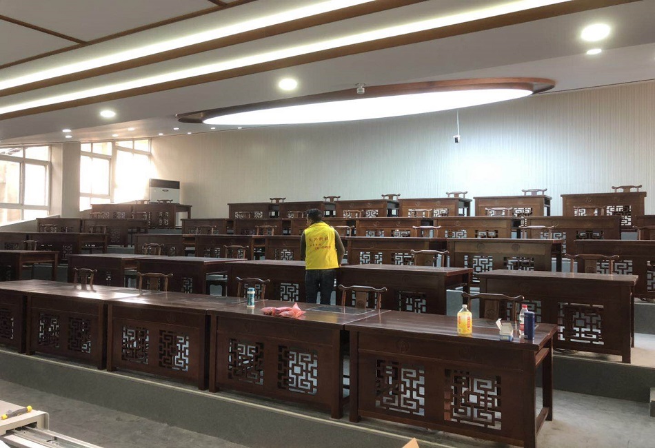 本套方案采用50套為/間高配版書法教室,書法桌采用實木、清明古典風(fēng)格,兩人一桌,規(guī)格為:180*80*75(長*寬*高)。漆面平整光亮,凳子規(guī)格55*45*85(長*寬*高)。