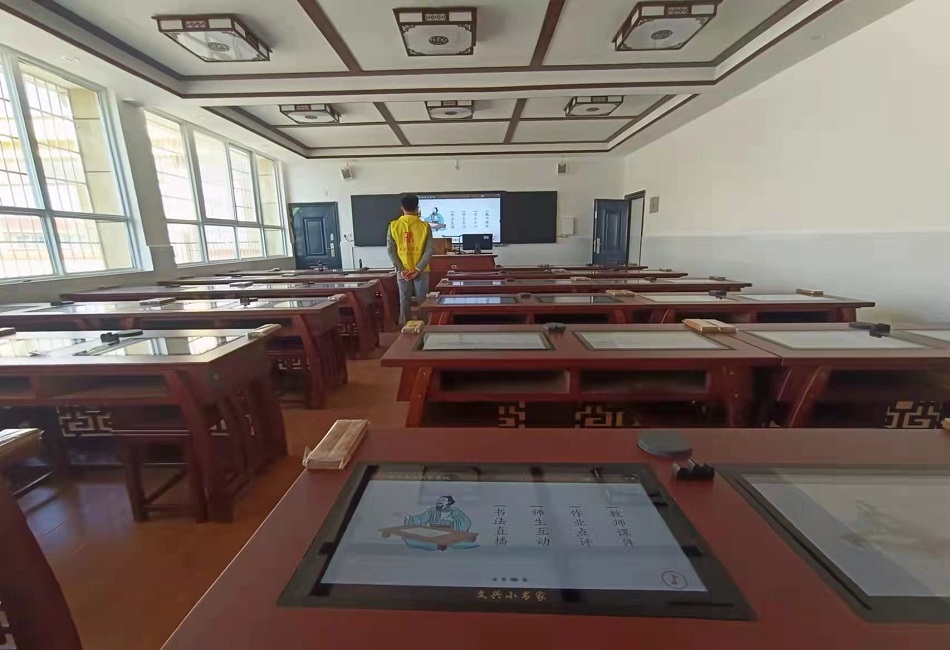 本系統(tǒng)采購40座為/間書法教室,書法桌采用實木清明古典風格,兩人一桌,規(guī)格為:140*60*75(長*寬*高)。實木結(jié)實牢固,漆面平整光亮,一桌兩凳,規(guī)格為35*30*45(長*寬*高)整體風格為明清古典。