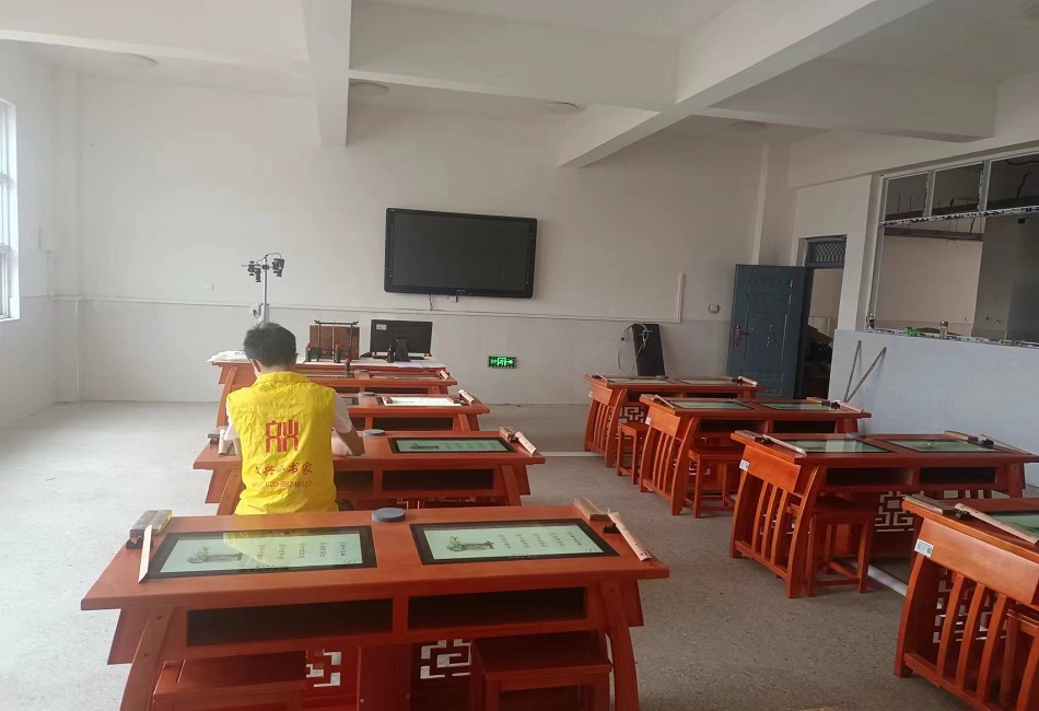 智慧書法教室系統(tǒng)采購36座為/間書法教室,書法桌采用實木清明古典風(fēng)格,兩人一桌,規(guī)格為:140*60*75(長*寬*高)。實木結(jié)實牢固,漆面平整光亮,一桌兩凳,規(guī)格為35*30*45(長*寬*高)整體風(fēng)格為明清古典。