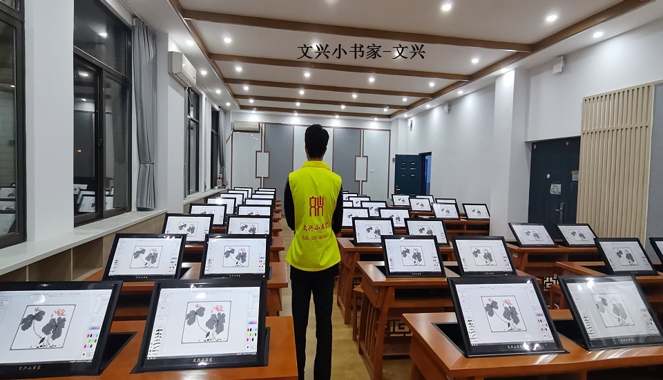本套方案采購國內(nèi)最先進(jìn)的書畫創(chuàng)新教室、主要具有書法與美術(shù)兩用功能,可實(shí)現(xiàn)書法教學(xué)臨摹和美術(shù)繪畫(如圖所示)。