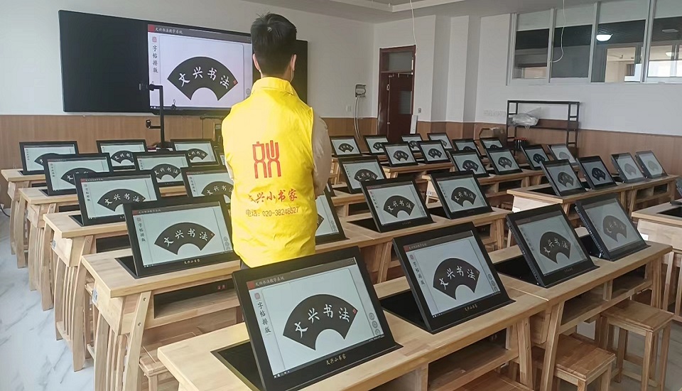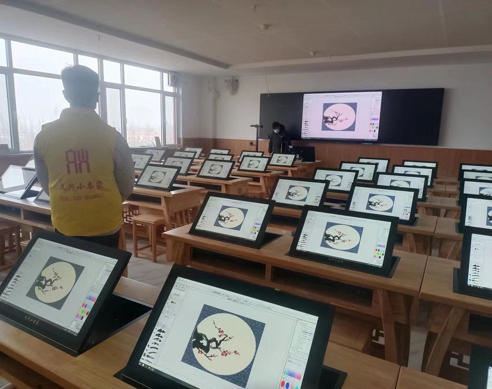 本套方案采購國內(nèi)最先進(jìn)的書畫創(chuàng)新教室、主要具有書法與美術(shù)兩用功能,可實(shí)現(xiàn)書法教學(xué)臨摹和美術(shù)繪畫(如圖所示)。