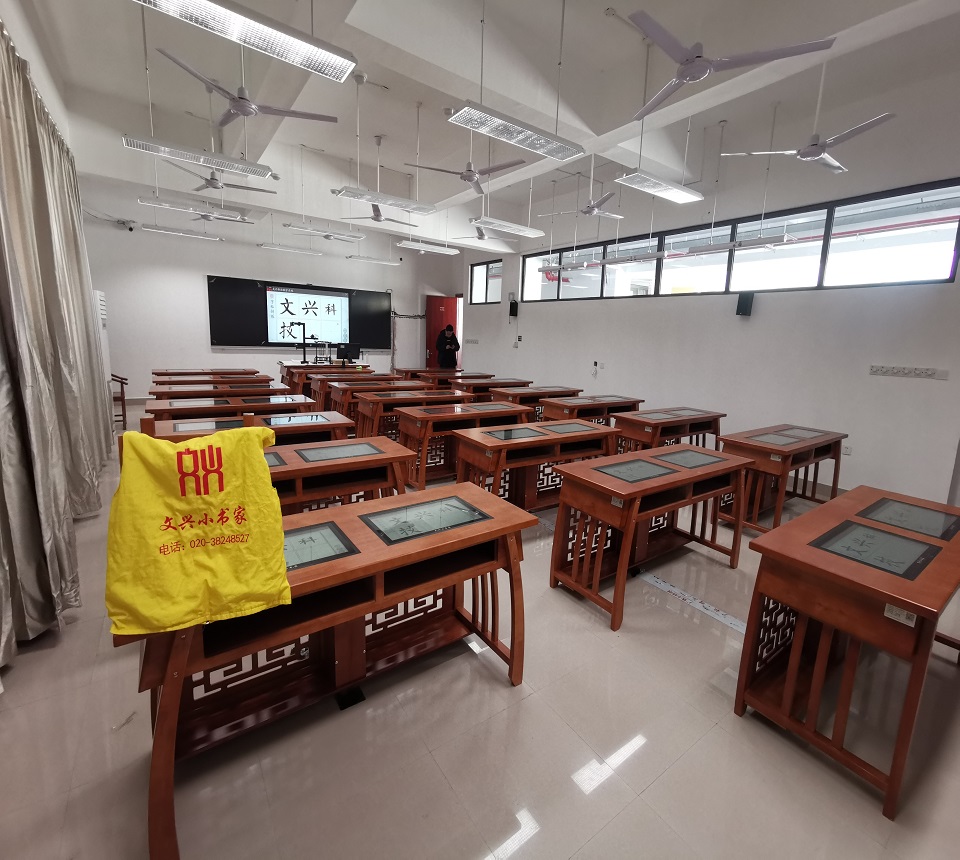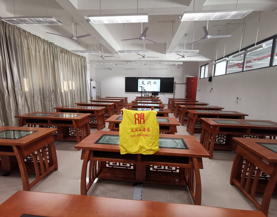 本套方案采用48位為/間書法教室,書法桌采用實(shí)木、清明古典風(fēng)格,兩人一桌,規(guī)格為:160*60*75(長(zhǎng)*寬*高)。漆面平整光亮,凳子規(guī)格35*30*45(長(zhǎng)*寬*高)。