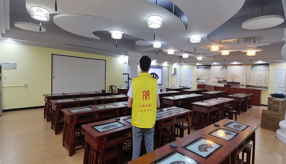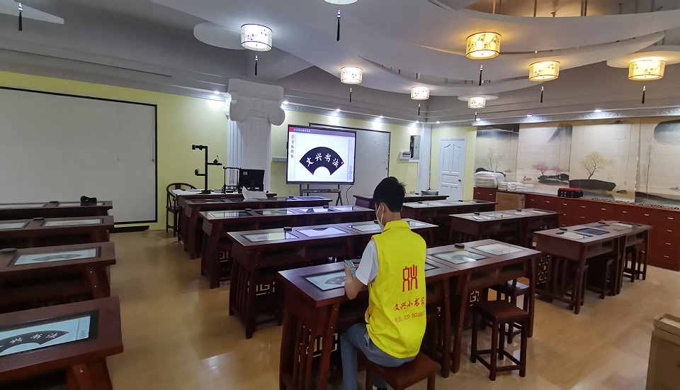本套方案采用40位/間智慧書法教室,書法桌采用實(shí)木、清明古典風(fēng)格,兩人一桌,規(guī)格為:140*60*75(長*寬*高)。漆面平整光亮,凳子規(guī)格35*30*45(長*寬*高)。