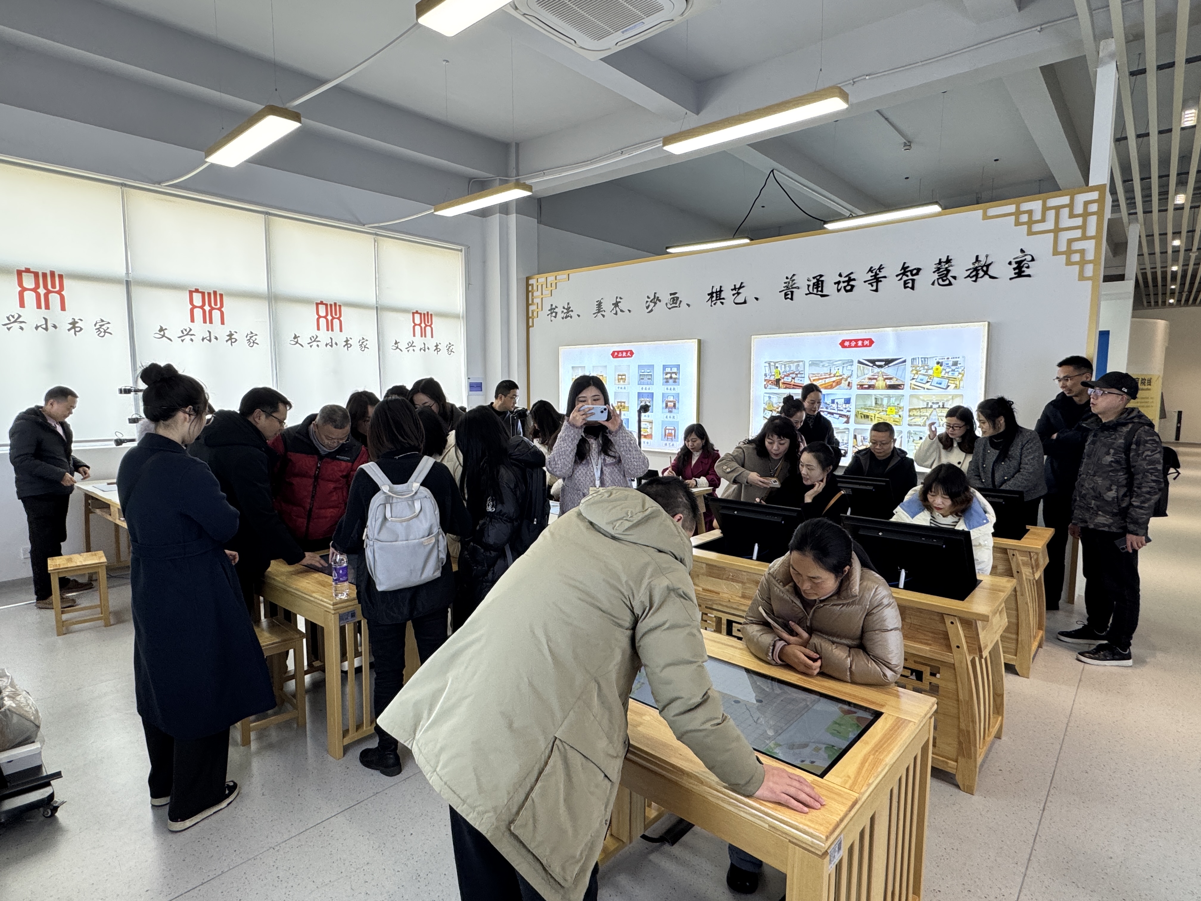 考察團(tuán)一行在參觀過(guò)程中,親身體驗(yàn)了智慧教室的各項(xiàng)功能。在智慧書法教室,他們通過(guò)書法臨摹臺(tái),直觀感受了傳統(tǒng)書法與現(xiàn)代科技的深度融合;在智慧美術(shù)教室,他們見證了如何在數(shù)字化環(huán)境中進(jìn)行創(chuàng)意繪畫;在智能棋藝教室,他們領(lǐng)略了棋藝教學(xué)的智能化與趣味化??疾靾F(tuán)成員們對(duì)文興的產(chǎn)品贊不絕口,認(rèn)為這些智慧教室產(chǎn)品為教育數(shù)字化轉(zhuǎn)型提供了全新的思路和方法,為未來(lái)教育發(fā)展開辟了廣闊空間。