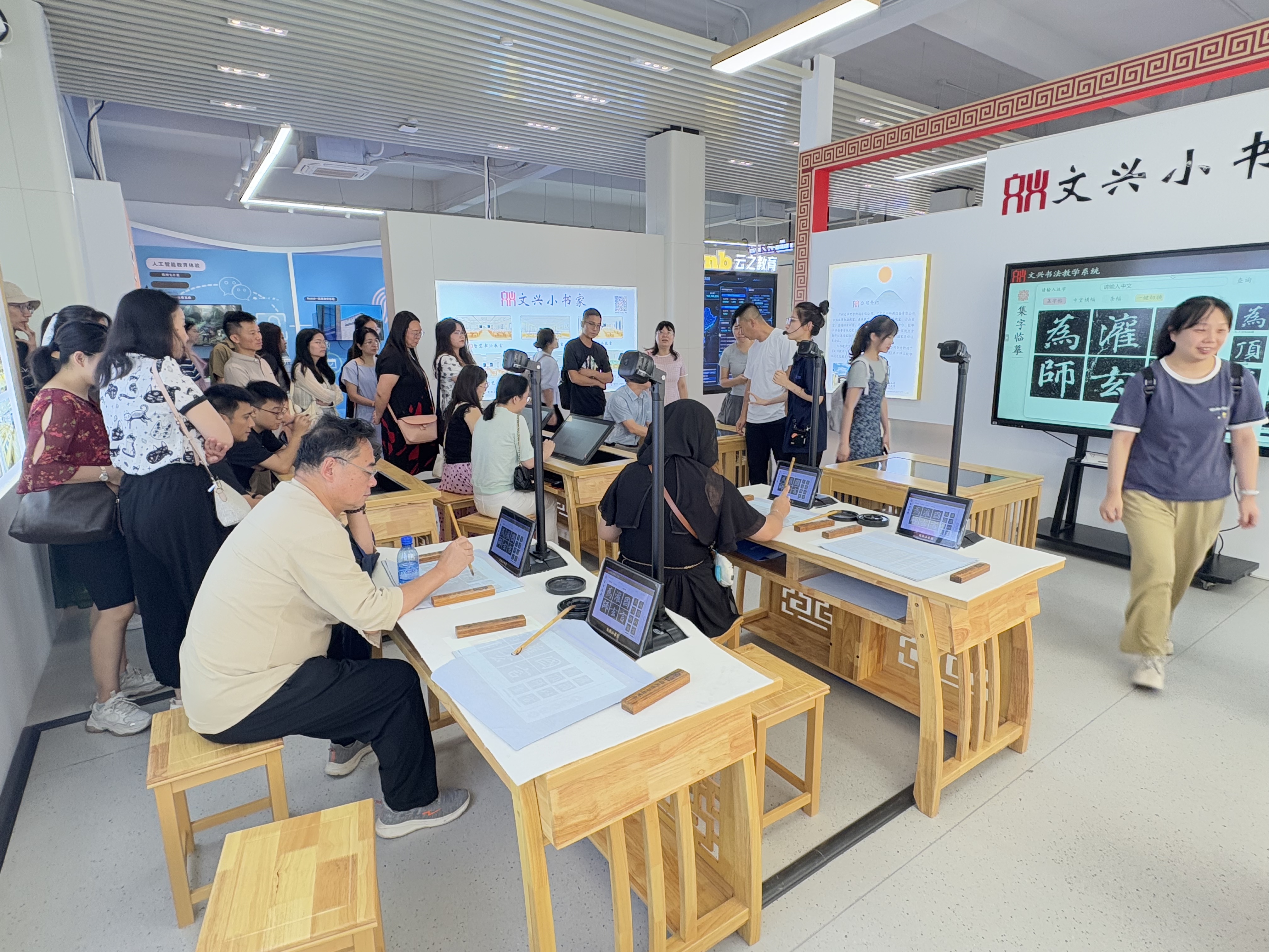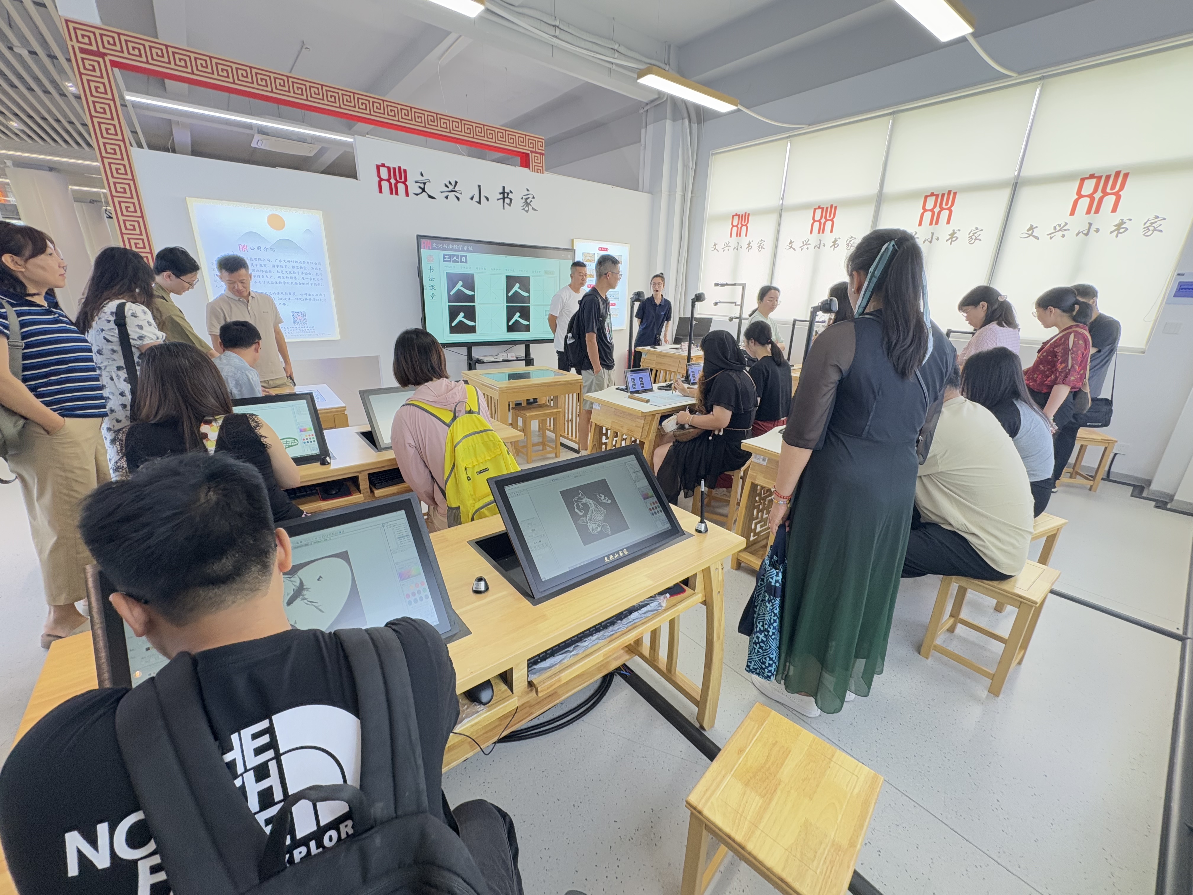 在文興小書(shū)家負(fù)責(zé)人的陪同下,培訓(xùn)班成員重點(diǎn)考察了智慧書(shū)法教育、智慧美術(shù)教育、數(shù)字棋藝文化三大領(lǐng)域的創(chuàng)新成果與應(yīng)用場(chǎng)景。這些融合了現(xiàn)代信息技術(shù)與傳統(tǒng)文化精髓的解決方案,精準(zhǔn)契合了新時(shí)代職業(yè)教育對(duì)技能培養(yǎng)、文化傳承和創(chuàng)新思維塑造的多重需求,引起了考察團(tuán)成員的濃厚興趣和高度關(guān)注。