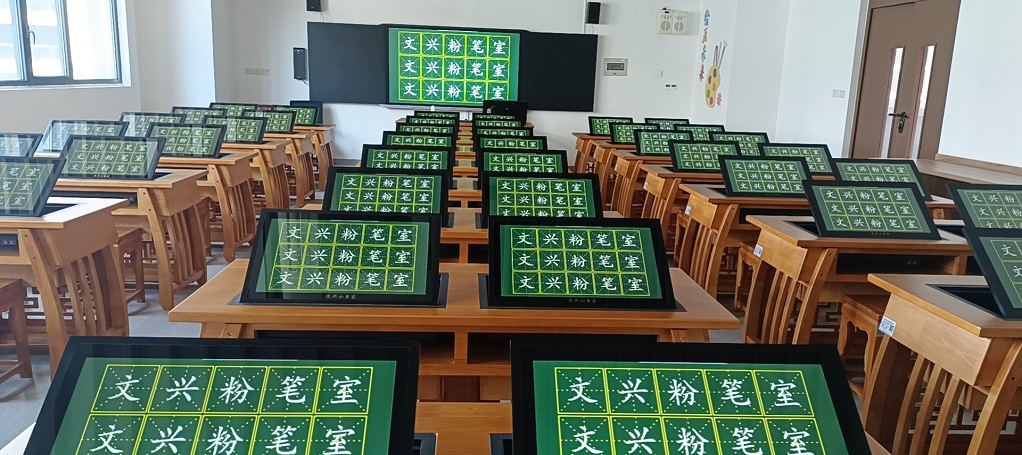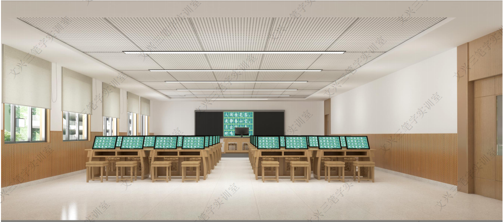 三筆字創(chuàng)新實(shí)訓(xùn)室主要具有軟筆教學(xué)、硬筆教學(xué)、粉筆教學(xué)等多樣性功能,交互式書畫臨摹臺可實(shí)現(xiàn)上下升降調(diào)節(jié),學(xué)生自主學(xué)習(xí)等設(shè)備組成。